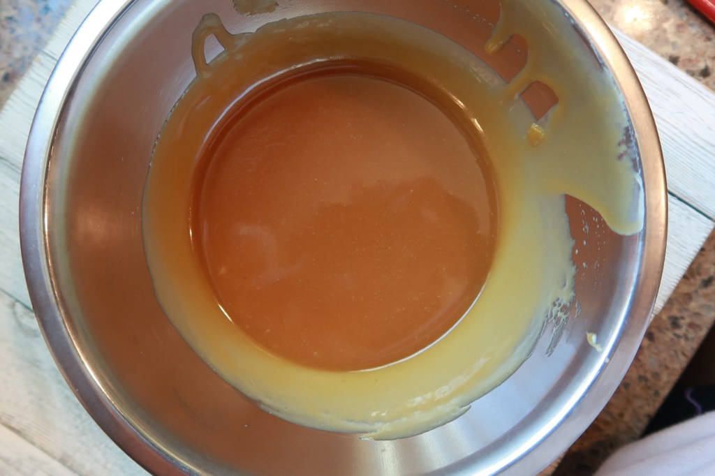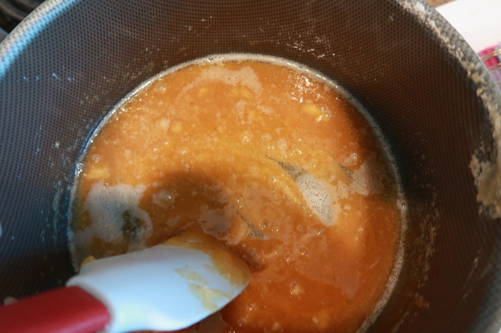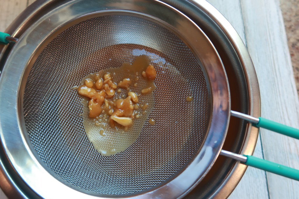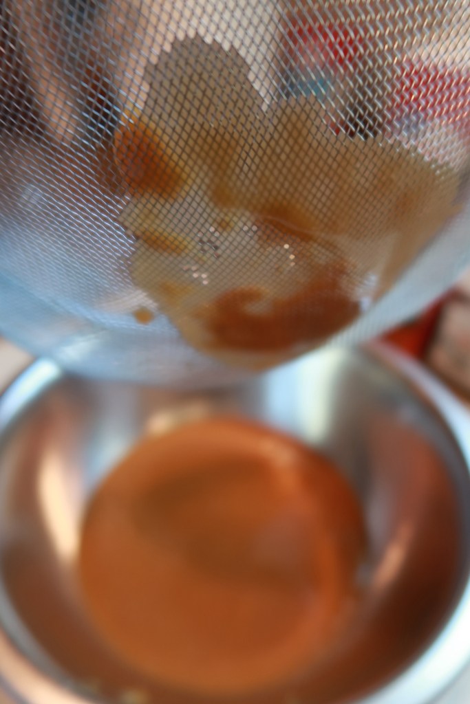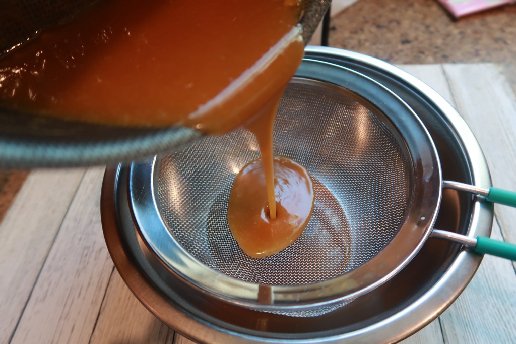 Make sure you have your bowl and strainer set right beside your stove so you can strain your caramel.